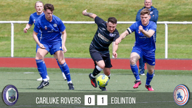 The Eglinton defence were also under pressure from the Rovers front men who kept the visitor’s keeper, Cree, busy, with Miller and Small both having shots saved by the stopper.