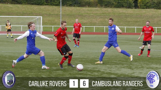 Carluke played the last 10 minutes with nine men following a sending off and the fact Marc Smith went off injured when Carluke had used all their subs. This however had no effect on the outcome and Cambuslang Rangers ran out comfortable winners at 1-6.