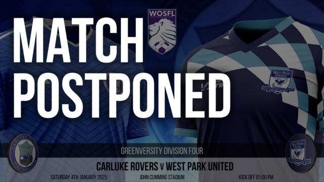 Due to snow still on the pitch at the John Cumming Stadium todays scheduled WOSFL Division 4 match against West Park United has been Postponed.