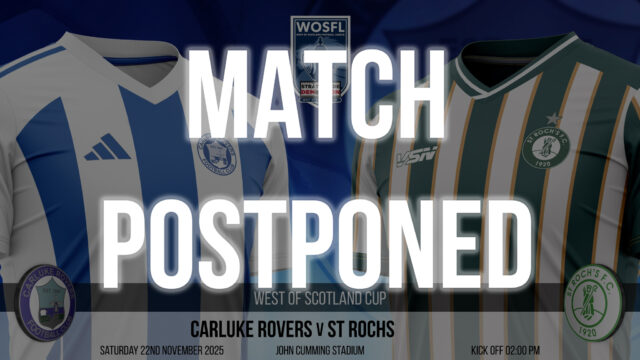 Todays West of Scotland cup tie against St Rochs has been Postponed.