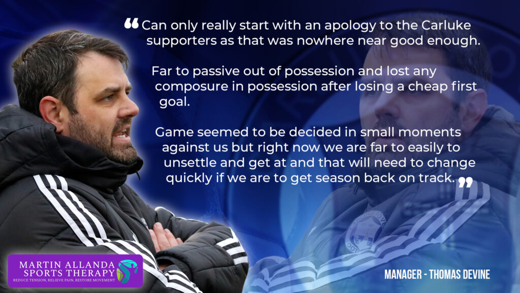 This was a hammer blow to Carluke who would have been well in the game had they scored the penalty but now went in 3-0 down at halftime.
